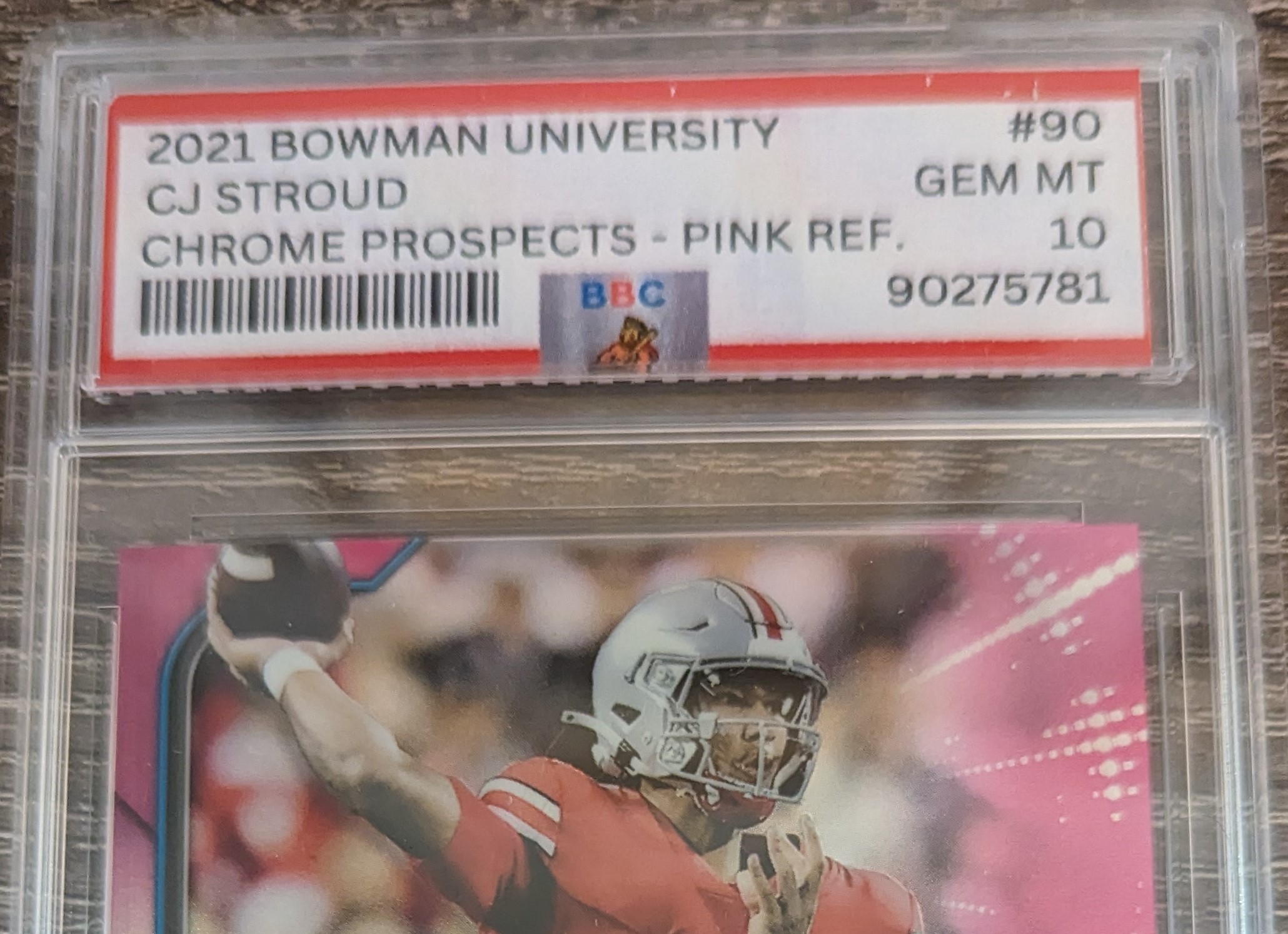 2021 Bowman University #90 CJ Stroud Chrome Prospects Pink – Grade 10 – Certification 90275781